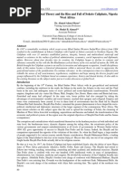 sending force against the Sultan of Gobir. During this period, there was a peace attempt and the message was sent by Sultan of Gummi. Seikh accepted the proposal and decided that Yunfa himself should come to Sokoto for the negotiations. The Gobir ruler would have come but his council advised otherwise and this peace effort failed. After the collapse of the peace effort, most important battle was attempt to liberate Gobirs capital, Alkalawa but also failed with great lost for Jamaah.in the fifth year of hijrah, Sheikh Usman Dan Fodio decided to combined physical attack on Alkalawa by sending messaged to all liberated countries of Hausaland to join the march against the final stronghold of Gobir power. Ultimately, Yunfa and his followers were slain and this marked the end of Hausa power and the beginning of the Sokoto Caliphate under sheikhs son, Muhammad Bello in 1809. This new In conclusion, Usman Dan Fodio did not set out early in his life to organise a jihad and to establish an Islamic state and society. He did not realise that his modest effort will lead to big political change in the state of Gobir. When he traveled out of Gobir to the neighbouring states to increase his knowledge, he clearly did not imagine much coming out of his efforts. But because of his writings which educate many people and his courageous efforts to bring justice for the people turn out to be a spark of this jihad. He acted wisely by not rushing to fight the ruler until the people fully prepared in physical and truly follow the teaching of Islam. Sheikh Usman Dan Fodio can be recognized as the reformist that contributed to cultivate the teaching and spreading of Islam in Sudanic-Belt in early 19th century.