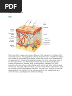 Skin Appendages Sudoriferous glands (sweat glands) are distributed over almost the entire skin surface. Eccrine sweat glands are coiled glands secrete their product through pores on the skin surface. Sweat is mostly water but may contain small amounts of salts, nitrogenous wastes, antibodies and a naturally occurring antimicrobial substance. It is secreted as a response to heat but may also be a response to stress and certain emotional states. A second kind of sweat gland, apocrine sweat glands are confined to the axillary and genital areas and become active beginning at puberty. Their ducts empty into hair follicles and their product consists of sweat and some lipids and proteins which might act as sex phermones. Ceruminous (earwax) glands and mammary glands are modified sweat glands. Sebaceous glands secrete an oily substance, sebum, usually into a hair follicle. It softens and lubricates the skin and retards water loss. It also has antimicrobial properties. These glands are activated during puberty. Bacteria that grow in these glands, particularly during puberty, may cause an inflammation that we call acne. Pili (hairs) consist mostly of dead, keratinized cells. It is a hard keratin that is also found in nails. Each hair has a shaft projecting from the skin surface and a root embedded in the skin. There are three concentric layers: a core or medulla surrounded by a cortex and an outermost cuticle. Hair follicles are invaginations of the epidermis that enclose the roots. This in turn is wrapped in a connective tissue sheath. The hair bulb (the expanded bottom of the follicle) is surrounded by a network of nerve fibers, the root hair plexus. The hair papilla is dermal tissue that protrudes into the hair bulb and contains small blood vessels. Melanocytes in the papilla account for hair color. Attached to each hair follicle is a small muscle called the arrector pili. Certain emotional states will cause the contraction of the muscle causing the hair to become upright, perpendicular to the skin. (Think of a cat.) When this happens, the hair pushes against the epidermis causing it to pucker as a goose bump. There are two basic types of hair: vellus hair, a finer hair that covers most of the body (except the palms and soles) and terminal hair that is coarser and is found on the scalp, eyebrows, axillary and pubic areas. It also grows in response to testosterone (male hormone) and so may be found in other areas on men (beard, etc.) Vendugo is fetal hair that is usually lost by the eighth month of gestation but may sometimes be seen for a short time after birth. Hirsutism (excessive hairiness) may occur sometimes as a result of hormone imbalance. Alopecia is a term used to describe baldness or hair thinning in both sexes. This is not to be confused with male pattern baldness which is a sex-linked trait. A nail consists of a free edge (which you periodically cut), a body attached to the nail bed, and a root embedded in the skin. The thickened, proximal portion of the nail bed is the nail matrix which produces hard keratin causing the nail to grow. The white, crescent-shaped area at the base of the nail is called the