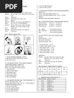 Are you a teacher? Are you ok? Are you hungry? Are you a lazy person? Do you swim? Do you speak English? Do you have breakfast? Do you live in Jakarta? Do you like movies? Yes, Im a teacher No, Im sick today No, Im full Yes, Im a bit lazy No, I dont swim Yes, I do Yes, I have No, I live in Bali No, I like sightseeing