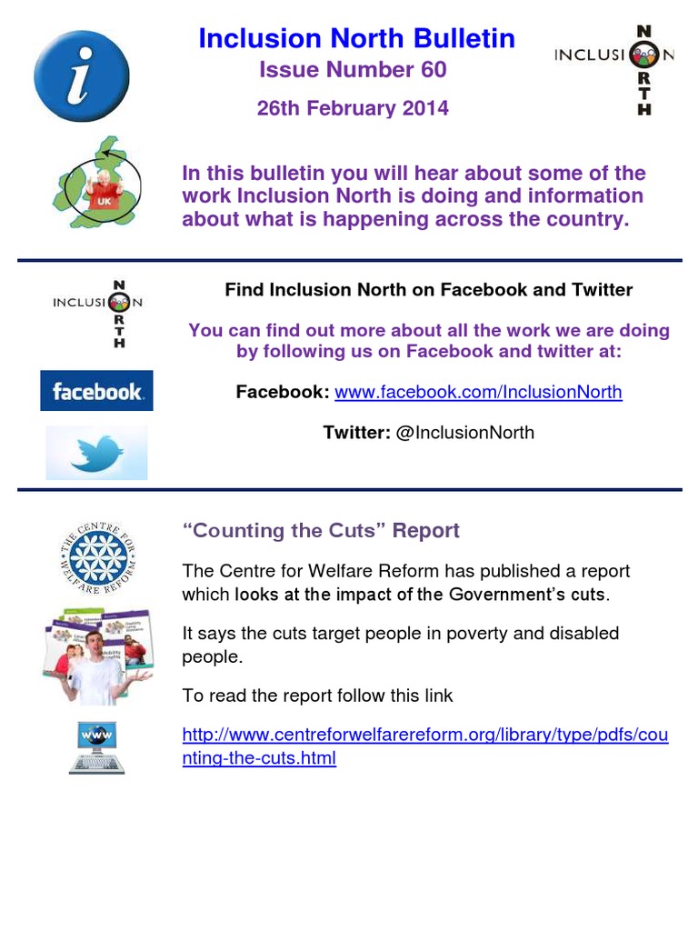 26th February 2014 In this bulletin you will hear about some of the work Inclusion North is doing and information about what is happening across the country.