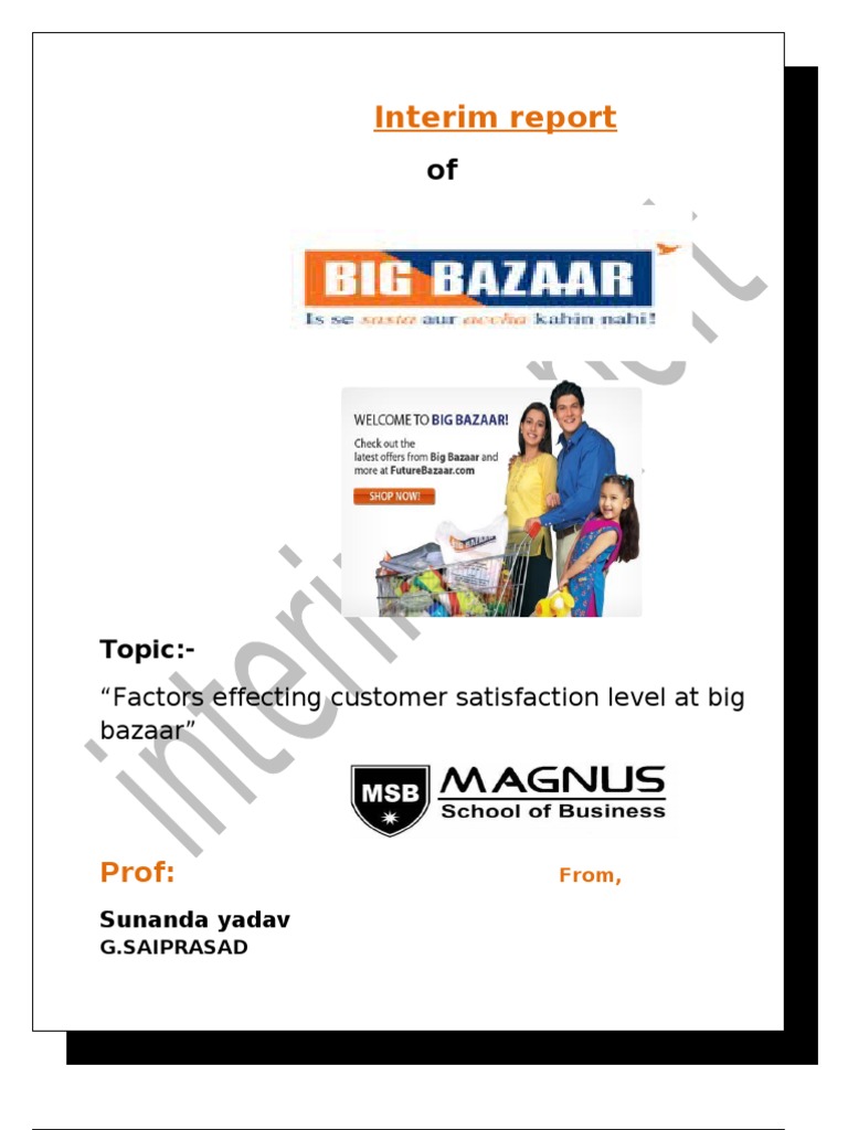 SATISFACTION LEVEL AT BIG BAZAAR” and how I have
