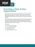 Making a Claim/Developing a Thesis What is an argument) "n academic writing, an argument is usually a main idea, often called a .thesis statement,0 bac#ed up with evidence that supports the idea$ inety8nine percent of the time you will need to ma#e some sort of claim and use evidence to support it, and your ability to do this well will separate your papers from those of students who merely provide accumulations of fact and detail$ A good paper will sta#e out a position and prove why it is a good position for a thin#ing person to hold$ When beginning to write a paper, as# yourself, .What is my 'uestion)0 and .What is my point0) "f your papers do not see# to answer a 'uestion and thus have a main point, they cannot be arguing for anything$ As#ing yourself what your point is can help you avoid a mere .information dump$0 A thesis statement tells a reader how you will interpret the significance of the sub6ect matter under discussion$ ote that a thesis is an interpretation of a sub6ect, not the sub6ect itself$ *he subject, or topic, of an essay might be World War " or Moby Dick7 a thesis must then offer a way to understand the war or the novel that others might dispute$ A single sentence somewhere in your first paragraph is often a good way to present your thesis to the reader$ *he body of the essay gathers and organi3es evidence that will persuade the reader of the logic of your interpretation$ %our thesis statement gives the reader a preview of the essay+s purpose and goal$ A strong thesis not only grabs the interest of your reader, who now wants to see you support your uni'ue interpretation, it also provides a focus for your argument, one to which every part of your paper refers in the development of your position$ A thesis #eeps the writer centered on the matter at hand and reduces the ris# of intellectual wandering$ 9i#ewise, a thesis provides the reader with a .road map,0 clearly laying out the intellectual route ahead$ When attempting to determine whether your thesis statement is really an argument, as# yourself whether someone could contest what you are claiming$ "f so, then you have formulated a genuine argument$ -nce you have stated that argument at the paper+s beginning, you will spend the rest of the paper( (a! supporting your argument and, (b! rebutting possible attac#s against your argument$ :lay devil+s advocate$ "magine that you are your own worst enemy5 someone who is trying to disprove the argument that you have put forth$ What flaws in your argument will your opponents point out) Where are the lapses in your thesis) -nce you have determined the wea#nesses in your own argument, you can wor# on eradicating them$ Arguments in academic writing are usually comple, and ta#e time to develop$ %our argument will need to be more than a simple or obvious statement such as, .1ran# 9loyd Wright