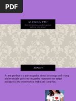 audience that I thought would be most likely to purchase a magazine of this genre. This is also the target audience that I surveyed in my target audience research so I used these findings to create my product in a way that caters to the interests of this audience. I did this by using fonts and images that looked more youthful and fun and would grab the readers attention.