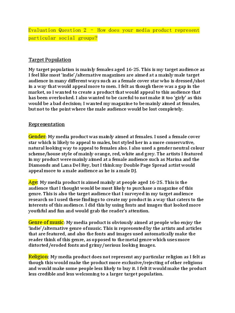 Ethnicity: Again, my media product does not represent any particular ethnicity