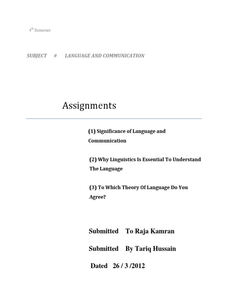 (1) Significance of Language and Communication (2) Why Linguistics Is Essential To Understand The Language (3) To Which Theory Of Language Do You Agree?
