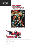 Chapter 1 More than Meets the Eye Chapter 2 Heavy Metal ! Autobots ! "ecepticons ! Humans ! #uintessons ! $ithonians Chapter % &uper!&cience ! The Matri' Chapter ( Makin) Transformers ! Technolo)y Clarifications ! M*+ M,+ M- ,ules ! Transformer Templates ! #uick and "irty Combiners Chapter . Transformer Characters ! Character Creation ! /o' &tats ! &kills ! $ifepath Chapter 0 History Chapter 1 2inal "etails ! Time -eriod ! -remade eapons ! &le "esi)ns ! 3ptimus -rime ! Me)atron ! 4ltra Ma)nus ! 5etfire ! Conclusion The Transformers