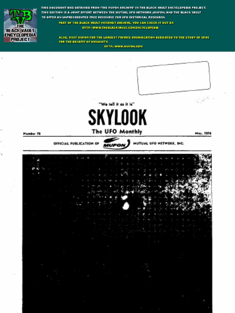Skylook, the UFO Monthly, is published monthly by Dwight there was coverage by the media. From there Dr.