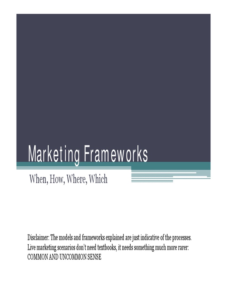 Disclaimer: The models and frameworks explained are just indicative of the processes. Live marketing scenarios dont need textbooks, it needs something much more rarer: COMMON AND UNCOMMON SENSE