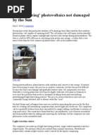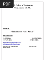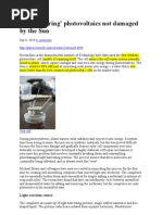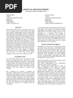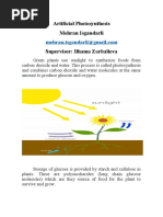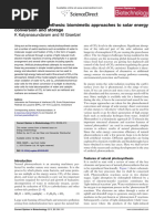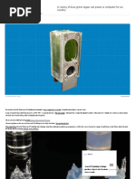 4. During their tests, the team shone a halogen lamp on their alga, their circuit registering a current of 1.2Pico amps equivalent to a yield of 0.6milliamps per square centimetre. By increasing the light intensity that value rose to a maximum of 6milliamps per square centimetre. Some silicon solar cells have a current density of 35milliamps per square centimetre. To give you an idea of the potential, a 5mm Superbright LED requires 15mA of current or 3.22v. Im no expert in electronics but it would seem to me that this research has great potential. For example, it has been suggested that developments in nanotechnology will lead to LEDs becoming increasingly energy efcient, requiring less energy to emit light. What is your view on this? You use the word scaling. Thats also behind my question: Why should I do it better than the plants? This is one chloroplast. Now, to make an approximation: Take a small plastic bag a sandwich bag. Take a big garbage bag. Fold it, make it small, and put it in the small sandwich bag. Then you have the chloroplast. In the same volume you have magnied, many-fold the surface. If we want to make an articial leaf that produces the same amount of energy as a natural leaf you have to deal