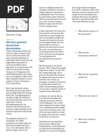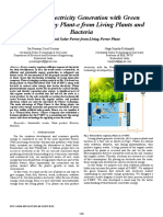 If you puncture it, its like a balloon pop. They have been more successful with developing solid-state electrodes with which to do it, but in principle what they do is the same as what we have done. 3. Do you think this research has potential as a means of generating low quantities of energy? The potential, electricity, you have, but the current, the power, is very low. But thats the principle from one chloroplast. If you cut a leaf, you see the leaf cells. In the leaf cells are six chloroplasts. If you now ask how many is that in the tree, you have to multiply all the cells in the leaves, and then you have a certain amount of energy there. Why didnt I do that calculation? If you have one leaf, you count the number of elements you need to collect the electricity. Its a closed system. But then I become the biologist. Why should I do that? I could draw the electricity from this green cell, but I could wait to have enough timber and burn it. I have done experiments to measure electricity so I can understand why this is this and why this happens. So if you ask is it theoretically possible? As far as we know, yes.