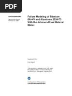 5. REFERENCES. 1. 2. Donald Lesuer, Experimental Investigation of Material Models for Ti-6Al-4V and 2024T3, FAA Report DOT/FAA/AR-00/25, September 2000. Johnson, G.R. and Cook, W.H., Fracture Characteristics of Three Metals Subjected to Various Strain, Strain Rates, Temperatures and Pressures, Engineering Fracture Mechanics, Vol. 21, No 1, pp. 31-48, 1985. Hancock, J.W. and Mackenzie, A.C., On the Mechanism of Ductile Failure in HighStrength Steels Subjected to Multi-Axial Stress-States, J. Mech. Phys. Sol., pp. 147-175, 1976. Johnson, G.R. and Holmquist, T.J., Test Data and Computational Strength and Fracture Model Constants for 23 Materials Subjected to Large Strains, High Strain Rates, and High Temperatures, Los Alamos National Laboratory, LA-11463-MS, 1989. Gogolewski, R.P. and Morgan, B.R., Ballistics Experiments With Titanium and Aluminum Targets, FAA Report DOT/FAA/AR-01/21, April 2001. Alexander, D.G. and Dietz, L.M., Pratt & Whitney memo FR-24864-8, October 12, 1999. Steven J. Lundin, Advanced Aircraft Materials Penetration Testing, Naval Air Warfare Center, China Lake, Draft Report v6, 2002. Backman, M.E. and Goldsmith, W., Int. J. Eng. Sci., Vol 16, p. 1, 1978. Gogolewski, R.P. and Cunningham, B.J., Terminal Ballistic Experiments for the Development of Turbine Engine Blade Containment Technology, Lawrence Livermore National Laboratory, UCRL-ID-120930, 1995. Steven J. Lundin, Engine Debris Fuselage Penetration Testing, Phase I, FAA Report DOT/FAA/AR-01/27, August 2001.