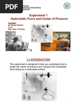 Objectives: 1. To determine the hydrostatic force acting on a plane surface immersed in water. 2. To determine the position of the line of action of the thrust force. 3. Calculate the hydrostatic force acting on a plane surface immersed in water for the cases of partially and fully submerged bodies. 4. Determine the position of the line of action of the thrust force and compare the position determined by experiment with the theoretical position.