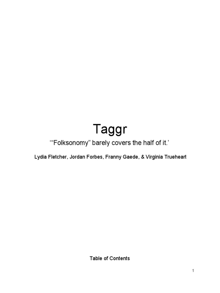 permitsallowsusersonthemainwebsitetosearch,sort,andfilterpostsinfluidand constantlyevolvingways. Unfortunately,thecurrentofferingofTumblrmobileapps,andparticularlytheunofficial appsforuseontabletcomputers,whiletheydoallowfortaggingandtagsearchingcapabilities, donotapproachthefulltagfunctionalityofthemainTumblrwebsite.Ourproposedapplication, tobecalledTaggr,willfillthisgapinthemarketbyfocusingspecificallyontagsortingand filtering.ThefeaturethatthecurrentlyavailableTumblrtabletappslackisthecapabilityfor discovery.Allofthetabletappsavailableareprimarilyconcernedwithrecreatingtheregular TumblrdashboardfortheuseronatabletourTaggrapp,ontheotherhand,willtargetusers whopreferusingthemainTumblrwebsitetosearchfortagsoutsideoftheirpresetdashboard preferences.Thiswillallowforgreaterdiscoveryofcontentnewtotheuser.TheTaggrappwill alsoallowforincreaseddiscoverybyofferingtheuseratagcloudofpopularandtrendingsearch terms,willprovideautocompletionofsuggestedtermsinthetagsearchbox,andwillsaveand autocompletetagspreviouslysearchedbyeachuser.Finally,Taggrscloudofsuggested searchtermswillchangeinrealtimeastheusercompletesmoresearches,alteringto incorporatetermsthattheuserhastypedaswellasrelatedsubjectterms. StatementofSignificance TheTaggrappisaproductthatwillgreatlyenhancetheuseofmetadatathroughout Tumblr.Tumblrtagsarefrequentlycolloquialandfocusonexpandingthecontentofapostrather thandevelopingastructuredmetadataschema.ThroughTaggr,userswillbeabletoharness thiscolloquialtaggingstructureinawaythatwillallowthemtobuildtheirownpersonalmetadata structuresandenhancetheiruseofTumblr.BecausetheTumblrtaggingsystemissovast, TaggrwillprovideacontrolledportalthatwillenableuserstonavigatetheTumblrtaggingsystem andclearandmeaningfulway. TaggrwillalsoallowuserstoaccessTumblrviatheirtablets.Currently,themost frequentaccesspointforTumblroutsideofapersonalcomputerisamobile.Byexpandingthe marketofTumblrrelatedappsontablets,Taggrwillencouragethetaggingsystemalreadyin usebyTumblrwhileencouraginguserstobecomecuratorsofblogcontent.Furthermore,Taggr isgoingtotakethetouchscreenbenefitsoftabletinteractionandintegratetheminsuchaway astocreateafunandengagingwaytocurate,store,andshareTumblrcontent.