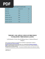 1.0 Introduction to Ultrasonic Thickness Gaging 2.0 Ultrasonic Transducers for Thickness Gaging 3.0 Modes of Measurements 4.0 Calibrating an Ultrasonic Thickness Gage 5.0 Gage Setup Considerations 6.0 Factors Affecting Measurement 7.0 Special Conditions 8.0 Typical Ultrasonic Gaging Applications 9.0 Appendices Material Sound Velocities Transducer Range Charts Ultrasonic Thickness Gaging Glossary