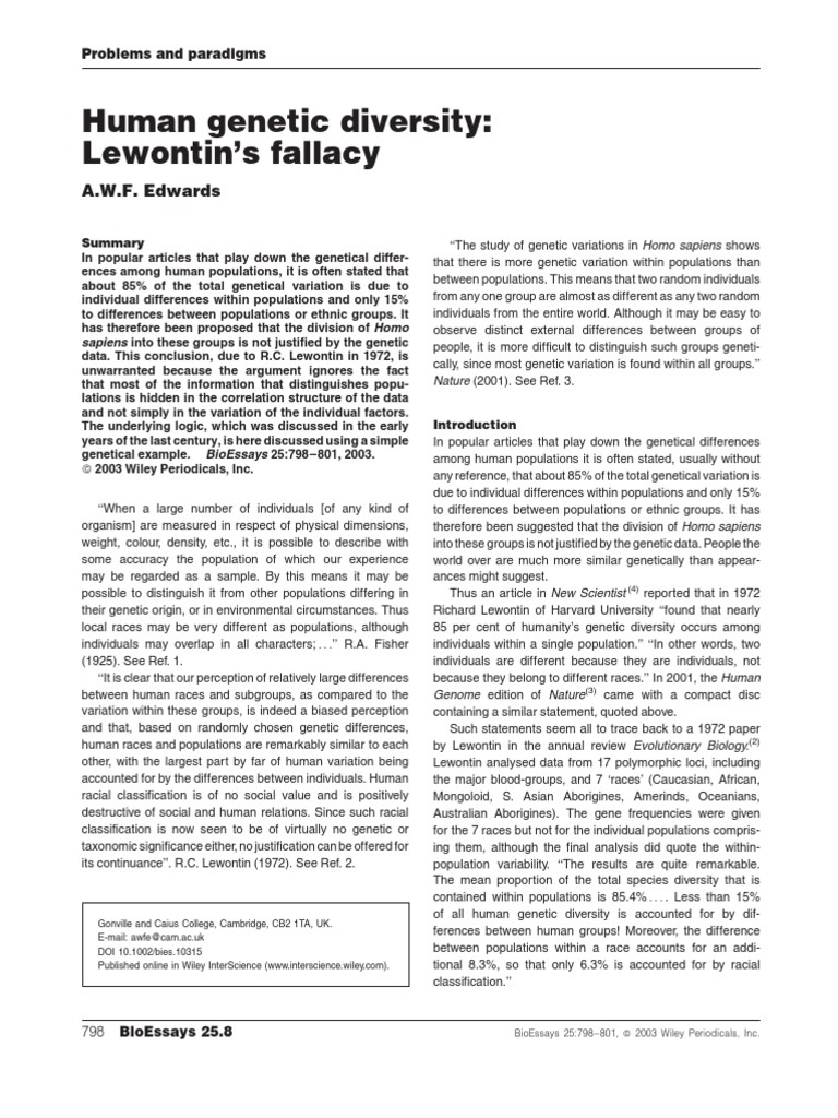 Lewontin concluded ‘‘Since