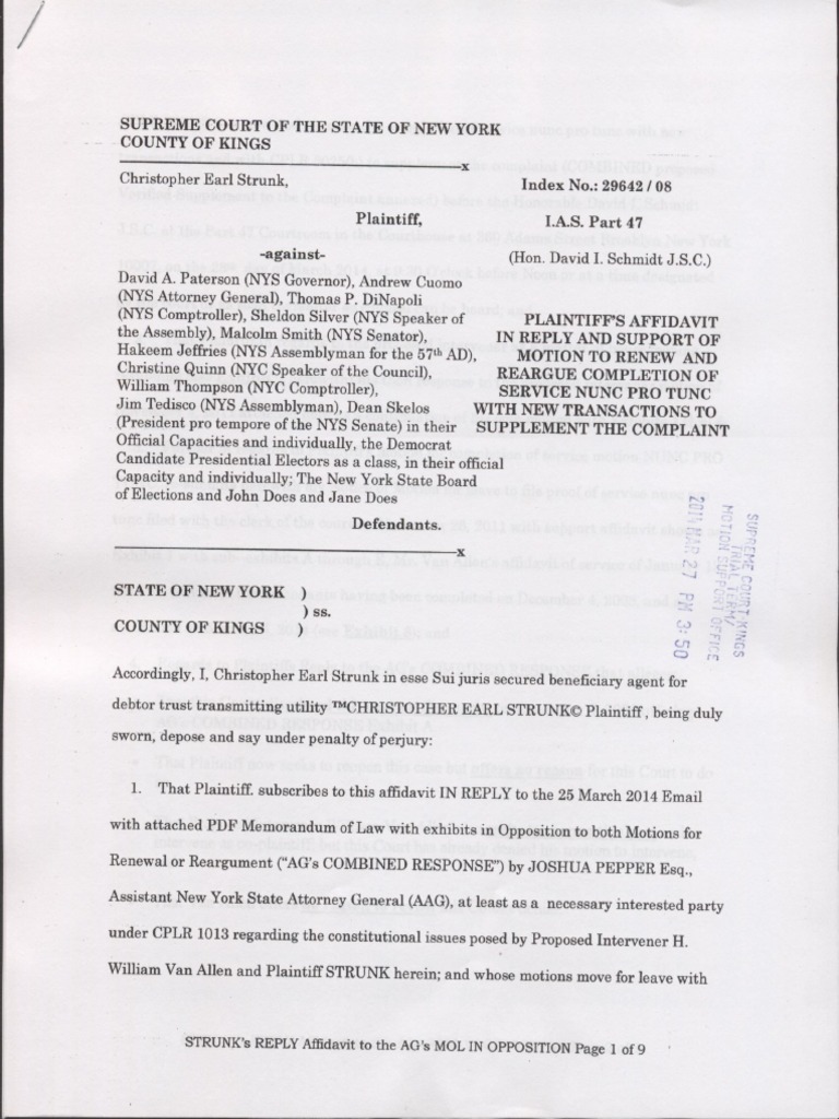 STRUNK’s REPLY Affidavit to the AG’s MOL IN OPPOSITION Page 3 of 9