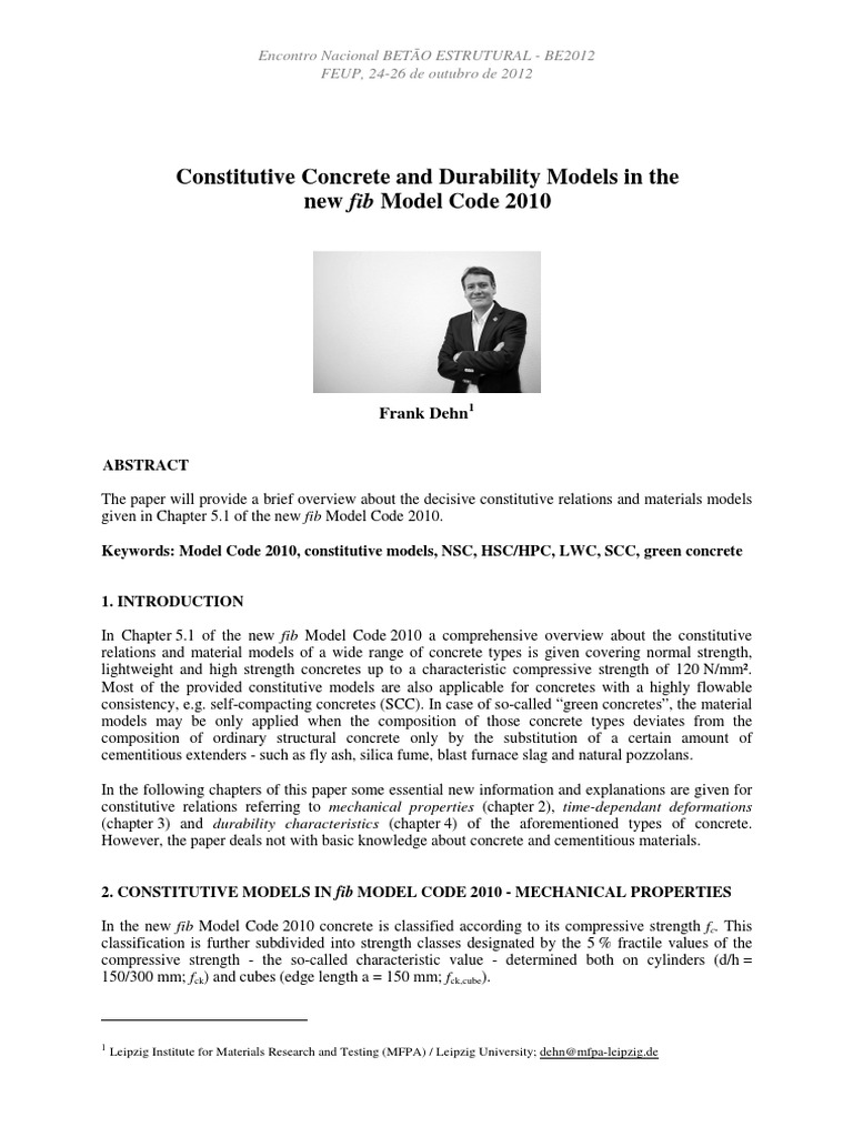 Keywords: Model Code 2010, constitutive models, NSC, HSC/HPC, LWC, SCC, green concrete