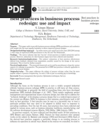 2. BPR success One of the difculties in conducting research on BPR is that various terms are used, such as Business Process Re-engineering, Business Process Redesign, or Business Process Improvement. Not only are there disagreements about the scale of change or scope of the processes being redesigned (Jones, 1994), but different denitions of the same term are used in different studies. This makes it difcult to compare studies (Childe et al., 1994). Rather than quibble about the denition of BPR, we prefer to take the pragmatic step of
