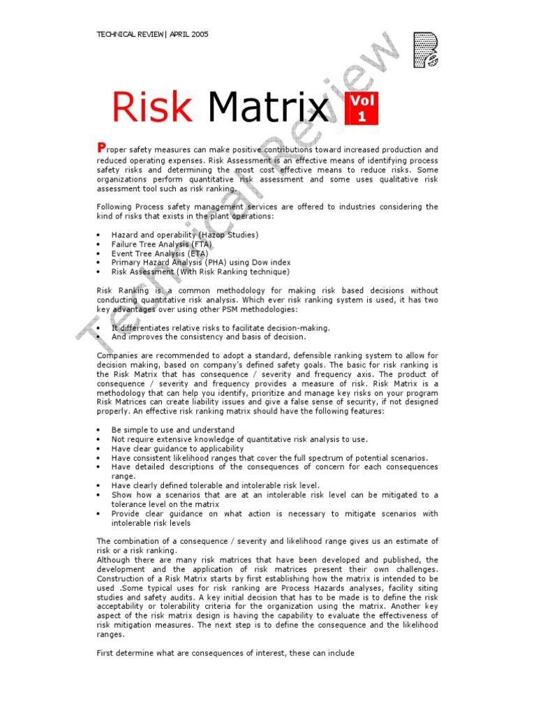 matrix. The following example of matrix published in CCPS (Centre for Chemical Plant