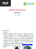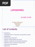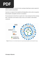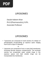 CHARACTERIZATION OF LIPOSOMES: The behaviour of liposomes in both physical and biological systems in governed by the factors such as: Physical size Membrane permeability Percent entrapped solutes Chemical composition Quantity and purity of the starting material Therefore, the liposomes are characterized for physical attributes: Shape size and its distribution Percentage drug capture Entrapped volume Lamellarity Percentage drug release Chemical compositions: Estimation of phospholipids Phospholipid oxidation Analysis of cholesterol Drug release: The mechanism of drug release from the liposomes can be assessed by the use of a well calibrated in vitro diffusion cell. The liposome based formulations can be assisted by employing in vitro assays to predict pharmacokinetics and bioavailability of the drug before employing costly and time consuming in vivo studies. The dilution-induced drug release in buffer and plasma was employed as predictor for pharmacokinetic performance of liposomal formulations and another assay which determined intracellular drug release induced by liposome degradation in the presence of mouse-liver lysosome lysate was used to assess the bioavailability of the drug.