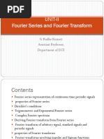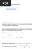 The document defines and discusses the Fourier transform and related concepts. It begins by defining the forward and inverse Fourier transform and discussing their connection to the Laplace transform. It then defines three useful functions - the unit rectangular window function, unit triangle function, and sinc function. The remainder of the document provides examples of applying the Fourier transform to various signals, including a unit impulse, constant signal, exponential, sinusoid, periodic signal, and impulse train. Tables summarizing key Fourier transforms are also included.