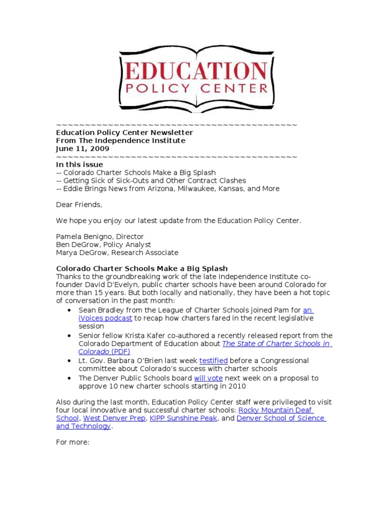 We hope you enjoy our latest update from the Education Policy Center.