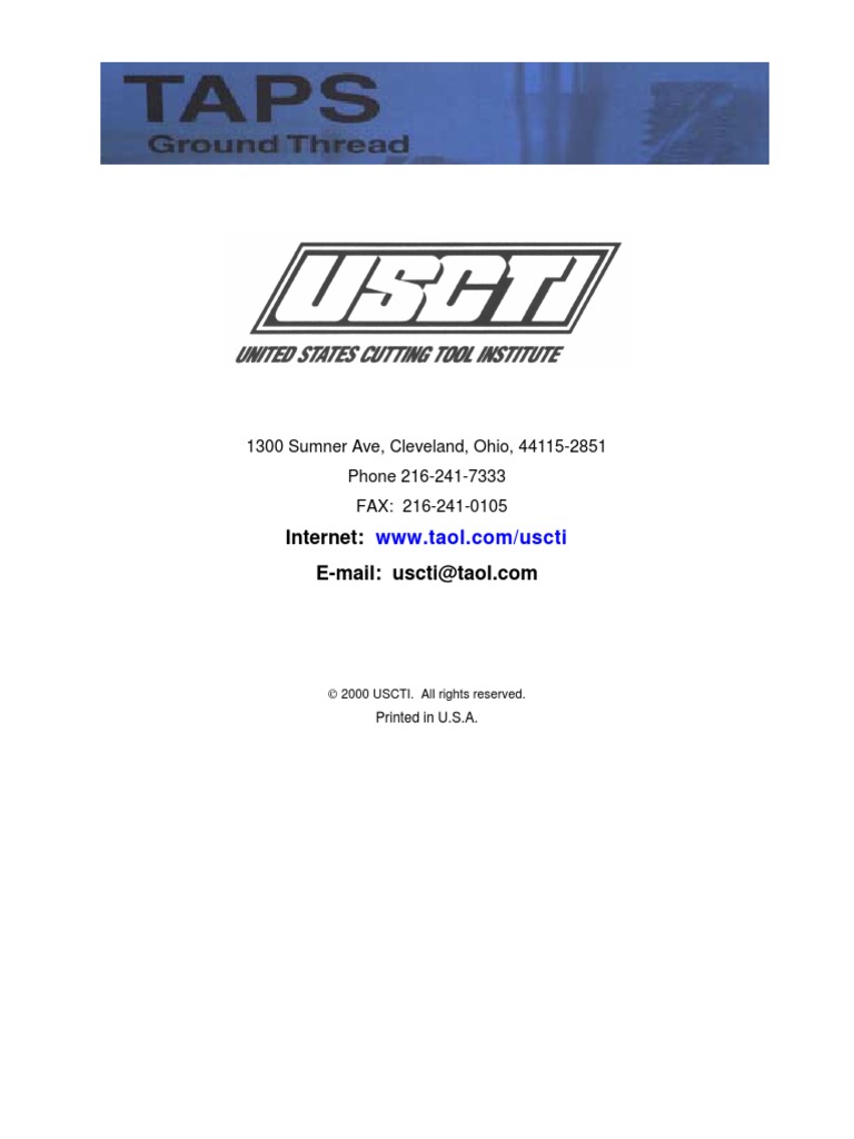 Standard; Taps-Cut and Ground Thread, ANSI B94.9. Various tap styles,