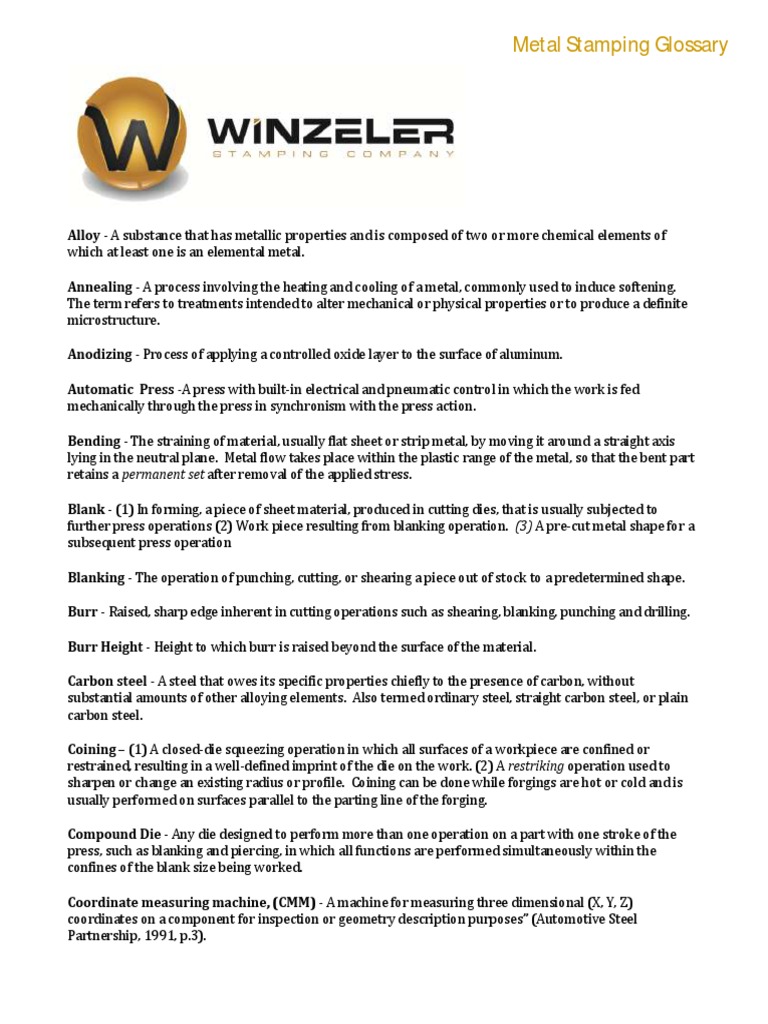 Metal Stamping Glossary