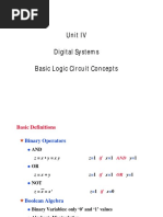 e"ra# Duality - We simply interchange OR and AND operators and replace 1s by 0s and 0s by 1s. Also, the duality principle states that if t o !oolean e"pressions are e#ual, then their duals are also e#ual. $"% X & 0 ' X ( X )1 ' X !asic *heorem - !oolean Addition% o " & 0 ' 0 & " ' " +0 is called the additi,e identityo " & 1 ' 1 +X ' AB & C AB & C & 1 ' 1- !oolean .ultiplication o "$0'0 o " $ 1 ' 1$ " ' " +1 is called the multiplicati,e identity- /dempotent 0a s o "&"'" o ""'" - /n,olution 0a o +"1-1 ' " - 0a s of 2omplement o " & "1 ' 1 o " $ "1 ' 0 - 2ommutati,e 0a s o "&y'y&" o "y'y" - Associati,e 0a s o +" & y- & 3 ' " & +y & 3- ' " & y & 3 o +" $ y- $ 3 ' " +y $ 3- ' " $ y $ 3 - Distributi,e 0a o " $ +y & 3- ' +" $ y- & +" $ 3o " & +y $ 3- ' +" & y- $ +" & 3- De.organ1s 0a s o +" & y-1 ' "1 y1 o +" $ y-1 ' "1 & y1 - 2onsensus 0a o " $ y & "1 $ 3 & y $ 3 ' " $ y & "1 $ 3 *he term y3 is referred to as the 4consensus term4. A consensus term is a redundant term and it can be eliminated. 5i,en a pair of terms for hich a ,ariable appears in one term and the complement of that ,ariable in another term, the consensus term is formed by multiplying the t o original terms together, lea,ing out the selected ,ariables and its complement.