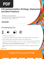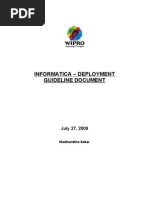 Informatica Deployment Checklist <Project Name > Description General Is the UAT completed ? Has the sign-off been obtained from the business units for code deployment in the Production environment? Documentation provided (SRS, SPDD, PowerCenter Design Specification, Unit Test Case, Job Details) Approval for Application Downtime required for the deployment is available ? Application owners notified for the deployment date and downtime File system space added on Unix box, if required as part of enhancement / development Target system (External / Internal) has ensured addition of tablespace; if required as part of enhancement / development Table created / altered as per the project requirement If there are any pre-requisites for each migration step, then have they been mentioned? Are the pre-requisites Is the Informatica object deployment list provided for deployment (Informatica_Deploymentlist_Project_Name.xls) Shared objects ( if any) listed in the (Informatica_Deploymentlist_Project_Name.xls) are verified for the What would be the method of migration (i.e., object copy, folder copy, repository copy or deployment group) Are the objects which are to be deployed valid? (Objects are valid and all objects are checked in) Are the correct versions of the objects to be deployed available? Do the required permissions exist for the objects and on folders to be migrated? Are there any dependencies between the objects to be deployed which needs to take care of? Parameter file provided Informatica command line scripts for workflow execution provided Has the consistency of the database connection names across environments been maintained? (If not, connections in session has to be changed) Developer team has highlighted findings based on testing carried out, experience and problem faced during Roll back plan for production failure is available? Power Center Tns_names.ora entries for the production source and target system available Tns_names.ora entries added on the server hosting Informatica Server Login Credentials for the source and target system provided, in case login details are not available FTP connection details are available, if required If a sequence generator transformation is being used, sequence number of the transformation is noted prior to deployment If there is a mapping variable used, mapping variable value is noted prior to deployment In cases of parameters and variables, have the correct values being provided in the parameter file or they would be using the default value in the first run? For session properties like cache sizes, DTM buffer size has proper values (optimum for the production Informatica Job scheduling provided