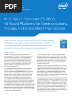 Server Virtualization Benchmark Baseline Configuration and Score on Benchmark: Intel Server Board S2600GL platform with two Intel Xeon Processor E5-2690 (2.9 GHz, 8-core, 20 MB L3 cache, 8.0 GT/s, 135W, C2-stepping), Virtualization Technology Enabled, Turbo Enabled, HT Enabled, NUMA Enabled, MLC Spatial Prefetcher Enabled, DCU Data Line Prefetcher Enabled, 256 GB memory (16x16 GB DDR3-1333 DR REG ECC), 128 GB SATA SSD, ESXi4.1u1 (build 348481). Source: Intel TR#1359 as of 24 July 2013. Score: 1723 @ 108VMs. New Configuration and Score on Benchmark: Intel Server Board S2600CP platform with two Intel Xeon Processor E5-2697 v2 (2.7 GHz, 12-core, 30 MB L3 cache, 8.0 GT/s, 130W, C0-stepping), Virtualization Technology Enabled, Turbo Enabled, HT Enabled, NUMA Enabled, MLC Spatial Prefetcher Enabled, DCU Data Line Prefetcher Enabled, 256 GB memory (16x 16 GB DDR3-1866 DR REG ECC), 128 GB SATA SSD, ESXi 5.1(build 799733). Source: Intel TR#1359 as of 24 July 2013. Score: 2246 @ 144VMs Enterprise Resource Planning Benchmark Baseline Configuration and Score on Benchmark: Intel Server Board S2600CP platform with two Intel Xeon Processor E5-2690 (2.9 GHz, 8-core, 20 MB L3 cache, 8.0 GT/s, 135W, C2-stepping), Turbo Enabled, HT Enabled, NUMA Enabled, MLC Spatial Prefetcher Enabled, DCU Data Line Prefetcher Enabled, 128 GB memory, SLES11-SP1, Oracle Database 10.2.0.4, Application SAP ECC6.0 EHP4. Source: Intel TR#1706 as of 18 July 2013.Score: 6,847. New Configuration and Score on Benchmark: Intel Server Board S2600CP platform with two Intel Xeon Processor E5-2697 v2 (2.7 GHz, 12-core, 30 MB L3 cache, 8.0 GT/s, 130W, C0-stepping), Turbo Enabled, HT Enabled, NUMA Enabled, MLC Spatial Prefetcher Enabled, DCU Data Line Prefetcher Enabled, 128 GB memory (16x8 GB DDR3-1600), SLES11-SP1-GM, Oracle Database 10.2.0.4, Application SAP ECC6.0 EHP4. Source: Intel TR#1706 as of 18 July 2013. Score: 9,444. Server-side Java* Benchmark Baseline Configuration and Score on Benchmark: Intel Server Board S2600CP platform with two Intel Xeon Processor E5-2690 (2.9 GHz, 8-core, 20 MB L3 cache, 8.0 GT/s, 135W, C2-stepping), 128 GB memory (16x8 GB DDR3-1600), RHEL 6.2.32, Oracle Hotspot 1.7.0_21-b05. Source: Intel TR#1310 as of 18 July 2013. Score: 40,047 max-jOPs. New Configuration and Score on Benchmark: Intel Server Board S2600CP platform with two Intel Xeon Processor E5-2697 v2 (2.7 GHz, 12-core, 30 MB L3 cache, 8.0 GT/s, 130W, C0-stepping), 64 GB memory (8x8 GB DDR3-1866), RHEL 6.2.32, Oracle Hotspot 1.7.0_40-ea-b2. Source: Intel TR#1310 as of18 July 2013. Score: 58,279 max-jOPs 27 Source: Intel internal measurements. SPECPpower_ssj2006* based on the Intel Xeon processor E5-26xx v2 (12C, 2.5GHz, 130W). Idle power based on the Intel Xeon processor E5-26xx v2 (12C, 2.5GHz, 95W). Results have been simulated and are provided for information purposes only. Results were derived using simulations run on an architecture simulator or model. Any difference in system hardware or software design or configuration may affect actual performance. Intel product plans in this document do not constitute Intel plan of record product roadmaps. Please consult your Intel representative to obtain Intels current plan of record product roadmaps. For more information, go to http://intel.com/performance 28 Source: Performance comparison using best submitted/published 2-socket server results on the SPECfp*_rate_base2006 benchmark as of 6 March 2012. Baseline score of 271 published by Itautec on the Servidor Itautec MX203* and Servidor Itautec MX223* platforms based on the prior generation Intel Xeon processor X5690.New score of 492 submitted for publication by Dell on the PowerEdge T620 platform and Fujitsu on the PRIMERGY RX300 S7* platform based on the Intel Xeon processor E5-2690. For additional details, please visit http://www.spec.org. Intel does not control or audit the design or implementation of third party benchmark data or Web sites referenced in this document. Intel encourages all of its customers to visit the referenced Web sites or others where similar performance benchmark data are reported and confirm whether the referenced benchmark data are accurate and reflect performance of systems available for purchase. SPEC* and the benchmark names SPECcpu,* SPECfp,* SPECint,* SPECjbb,* SPECjvm,* and SPECvirt_sc* are registered trademarks of the Standard Performance Evaluation Corporation. For more information about SPEC benchmarks, see www.spec.org. 29 Up to 86% better performance claim based on SPECjbb*2005 business operations per second (bops) benchmark results on top 130W TDP 2- and 4-socket Intel Xeon processor publication. (Source: www.spec.org as of 22 August 2012) Baseline 2-socket populated IBM iDataPlex* Server dx360 M4-based platform using two 130W TDP Intel Xeon processors E5-2680 (8C, 2.7GHz up to 3.5GHz Turbo), 64GB memory (16x 4 GB DDR3-1600 DIMMs), Microsoft Windows Server* 2008 R2 Enterprise Edition, IBM J9* JVM build 2.6 JRE 1.7.0. Score: 1,511,987 bops and 188,988 bops/JVM. New 4-socket populated IBM System x*3750 M4-based server platform with four 130W TDP Intel Xeon processors E5-4650 (8C, 2.7 GHz up to 3.3 GHz Turbo), 256 GB memory (32x 8GB DDR3-1600 DIMMs), Microsoft Windows Server* 2008 R2 Enterprise Edition, IBM J9* JVM build 2.6 JRE 1.7.0. Score: 2,818,988 bops and 176,187 bops/JVM. 30 Intel internal measurements as of November 2013 Configuration Details OLTP brokerage workload results using Microsoft SQL Server* (transactions per second) Intel Technical Report (TR) #1371. Baseline configuration: 4-Socket Intel 7500 Chipset-based Server with four Intel Xeon processors E7-4870 (30M Cache, 2.40 GHz, 10 Cores) using 64x 8 GB DDR3-1066 memory (512 GB) scoring 3008 with SQL Server* 2012. New Intel configuration: 4-Socket Intel C602J Chipset-based Server with four Intel Xeon processors E7-4890 v2 (37.5M Cache, 2.80 GHz, 15 Cores) using 64x 16 GB DDR3-1333 (running at 2666 MHz) memory (1 TB) scoring 5216 with SQL Server* 2012