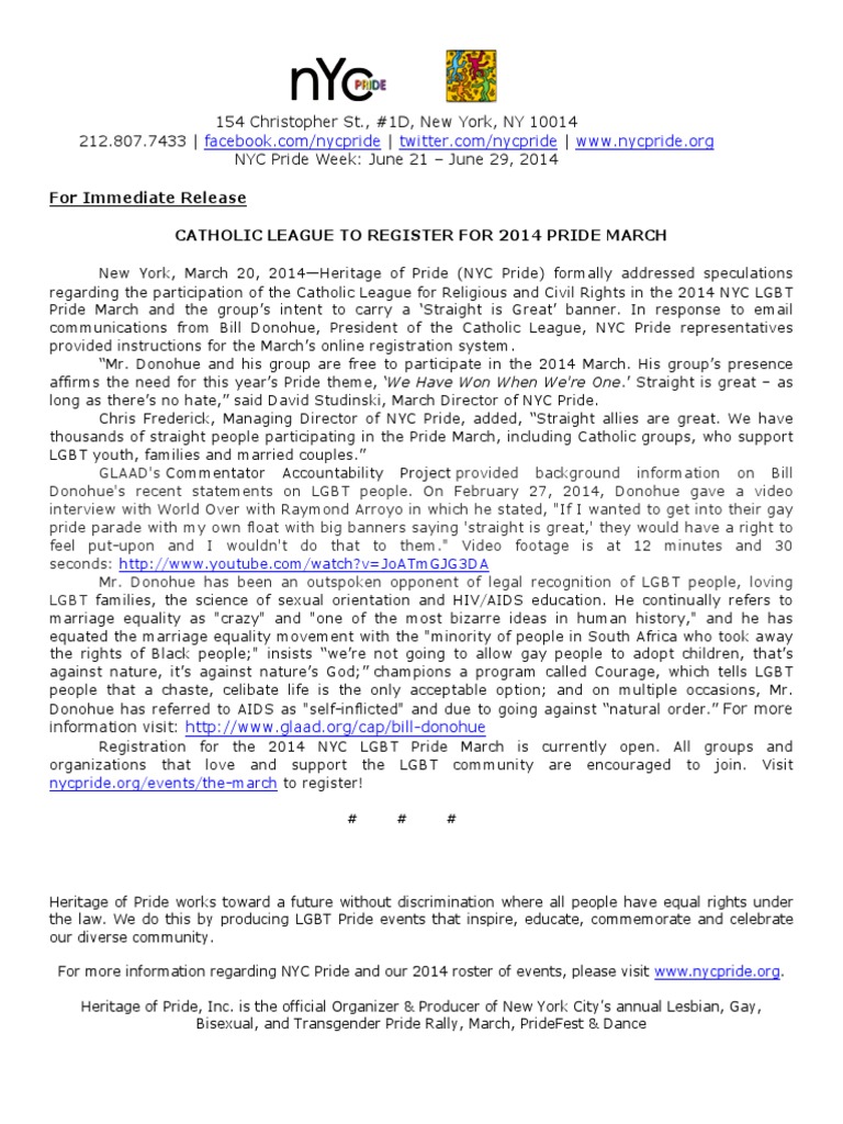 NYC Pride has agreed to allow the anti-gay Catholic League, headed by Bill Donohue, to march in the 2014 parade.