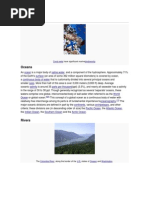 Coral reefs have significant marinebiodiversity. OCEANS Main article: Ocean An ocean is a major body of saline water, and a component of the hydrosphere. Approximately 71% of the Earth's surface (an area of some 362 million square kilometers) is covered by ocean, a continuous body of water that is customarily divided into several principal oceans and smaller seas. More than half of this area is over 3,000 meters (9,800 ft) deep. Average oceanic salinity is around 35 parts per thousand (ppt) (3.5%), and nearly all seawater has a salinity in the range of 30 to 38 ppt. Though generally recognized as several 'separate' oceans, these waters comprise one global, interconnected body of salt water often referred to as the World Ocean or global ocean. This concept of a global ocean as a continuous body of water with relatively free interchange among its parts is of fundamental importance