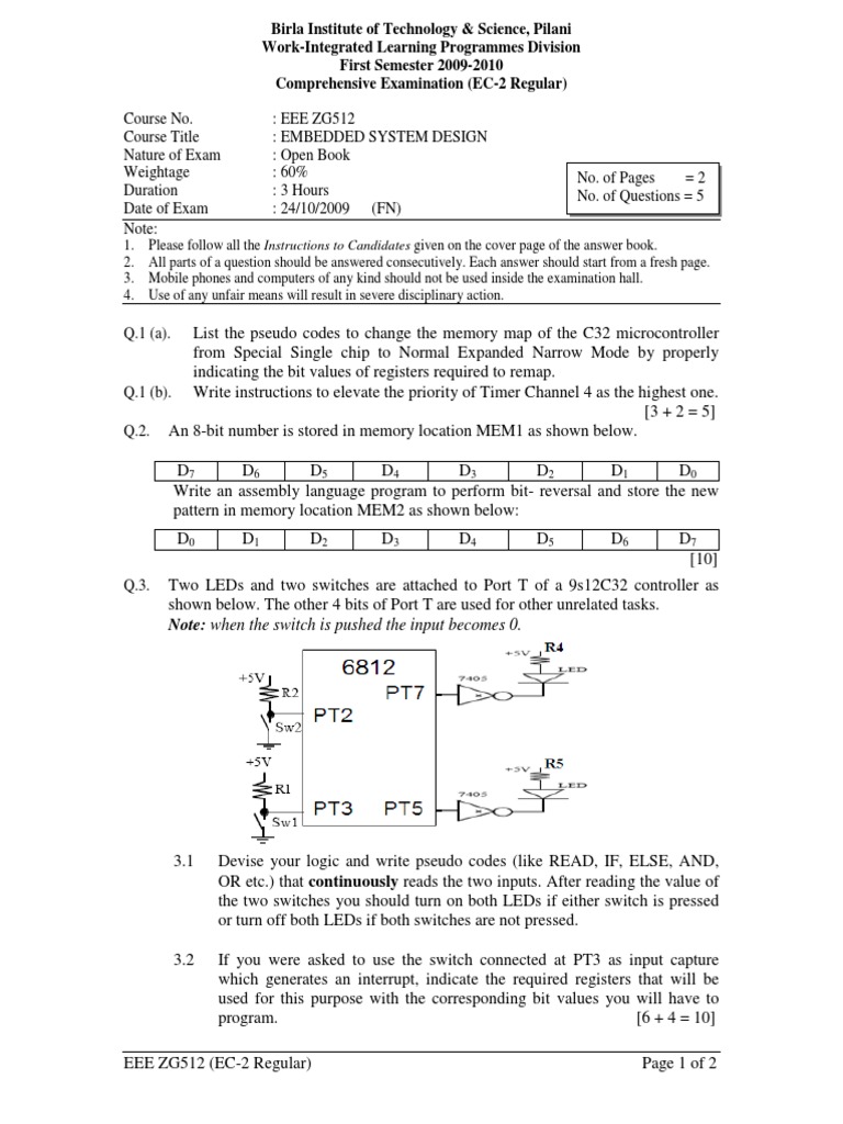 : EEE ZG512 : EMBEDDED SYSTEM DESIGN : Open Book : 60% : 3 Hours : 24/10/2009 (FN)