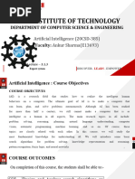 It is worth listing some of the areas of research in AI: natural language understanding knowledge representation common sense reasoning logic in AI intelligent tutoring systems planning and scheduling computer vision robotics speech understanding machine translation using AI techniques This list is not complete in any sense. But it does capture some of the important areas of AI activity. We shall not attempt to discuss all of these topics. But it is worth mentioning why some of the topics are of great interest. If language is a vehicle of thought, it is natural that language understanding is given considerable importance. The complexity of human language is, one would suspect, related to the complexity of the world that one has to represent in ones mind. So, issues of language understanding and knowledge representation have a common ground. Work in scheduling is creating a new form of operations research. A high volume of information is used by human schedulers in carrying out their job. For instance, in scheduling aircraft, you might have to take into account the fact that ying crew should not work more than 10 hours at a stretch. You might have to remember that a certain airport is closed for trac between 11 PM and 6 AM. There may be thousands of items of such knowledge. Hence, knowledge based scheduling, for creating an airline schedule, makes a lot of sense. We could have said of early Computer Assisted Instruction (CAI) systems: Forgive them, for they know not what they are programmed to teach! Similarly, we could have said of early machine translation systems: Forgive them, for they do not understand what they are expected to translate! Researchers are now working on Intelligent Tutoring Systems and on machine translation systems which have capabilities to understand the words and phrases they are using. Obviously, a teacher or a translator who understands what he is saying is better than a simple machine which spews out words in an unthinking way. AI based approaches to old problems are, therefore, more promising than any approach tried so far.