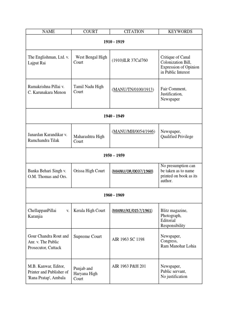 Defamation, Section 7 of the Press (Registration of Books) Act.