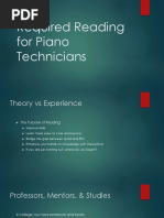 Associate members: This guide will assist you in obtaining the essential tools, reference materials, and skills necessary to become a Registered Piano Techniciru1. While not a mru1datory requirement, all aspiring RPTs are strongly encouraged to use this valuable tool as they work towruds the goal of becoming a qualified professional There are two parts to this checklist: T he Reference C hecklist details minimum suggested reading materials, tools and supplies, activities, and experience. You should check off each item as completed. This will help defme a path of study and also help your mentors provide help where it is most needed. T he Exam Readiness Checklist contains a sampling of skills needed to pass the RPT tuning and technical exams. Your mentor (or any experienced colleague) can check you off on these skills. When all items are checked off, you can feel confident that you rue ready to challenge the RPT exams. .Mentors/chapter officers: It is recommended that you meet with all Associate members periodically to review their checklists. This will give you the opportunity to identify the Associates' specific needs and match them with resources within the chapter. For example, if an Associate's checklist indicates need for more experience with grand regulation, someone in the chapter may volunteer to allow the Associate to regulate a grand in their shop (or school, church, or store) for practice and critique. The PACE Lesson Plans offer an excellent opportunity for Associate members to identify the skills and knowledge needed to prepare for the RPT exams, and to track their progress on the Exam Readiness Checklist.