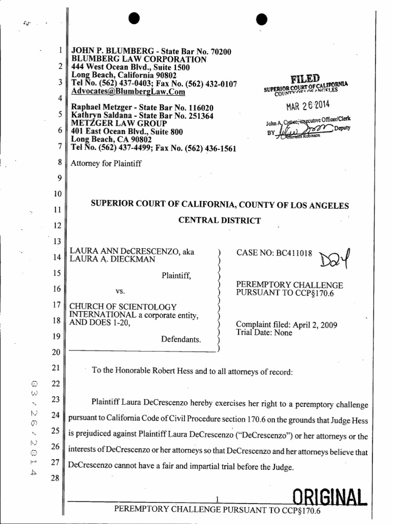 DeCrescenzo Vs Scientology: DeCrescenzo Challenge To Hess