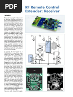 Fig. 2 shows the receiver circuit. A regulator built around transistor T4 and zener diode ZD3 provides regulated 5V DC to the receiver module (RX1) and CD4093 quad Schmitt NAND gate (IC2). When the receiver module detects a signal from the transmitter, it outputs the code pulses to pin 1 of gate 1. The 38kHz pulses generated by the oscillator formed by gate N7, C6 and R10 are fed to pin 2 of gate N5. The pulse output at pin 3 of gate N5 is remodulated with the 38kHz subcarrier to provide noise immunity in IR remote control systems. These 38kHz tone bursts are then fed through buffer inverting gate N8 to transistor T5 via base resistor R7. Thus T5 is driven at a 38kHz rate for each of the received code pulses. The IR transmitting LEDs (IR LED1 and IR LED2) produce the regenerated IR control pulses for your DVD player. At the same time, LED2 flashes to indicate reception of the transmitted signal. Diode D4 prevents damage due to accidental reverse-polarity connection of the plugpack supply, while C9 provides additional smoothing. Both the transmitter and receiver units are designed to run from an adaptor or any other convenient 12V DC source.