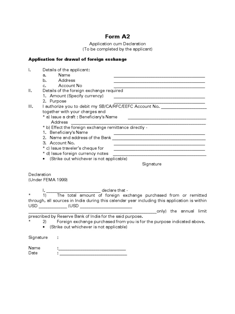 Application for drawal of foreign exchange
