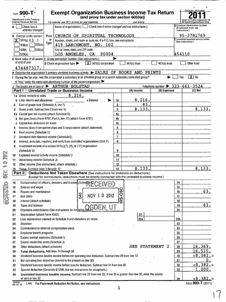 Church of Spiritual Technology's 2011 tax return