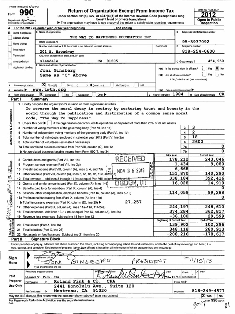 Save 2012 The Way to Happiness Foundation 990 Return For Later