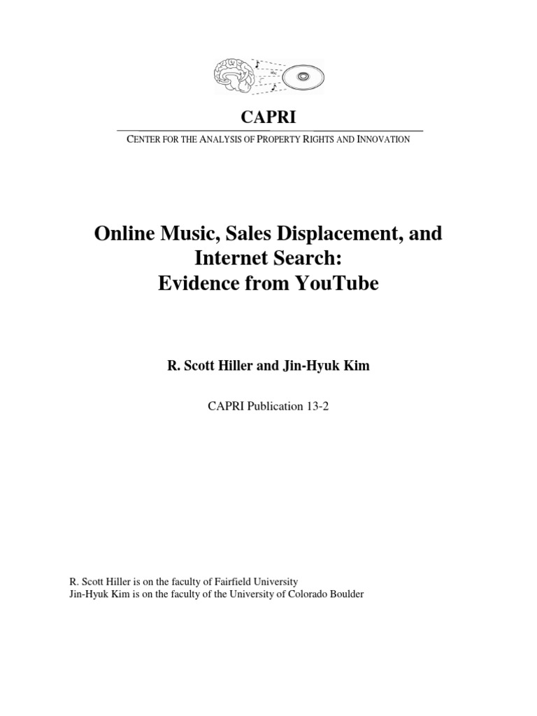 Abstract Digital content services have become an important means of enjoying music, and considerable debate exists over the performance rights of sound recordings. In this paper, we exploit the removal of Warner Music content from YouTube in January 2009, and its restoration in October 2009, as a plausible experimental design to investigate the impact of online content availability on music sales and Internet search. To this end, we obtained weekly sales gures for Billboard top 200 albums from Nielsen SoundScan and constructed a globally consistent index of artist keyword search using Google Trends. We nd that the blackout had both statistically and economically signicant positive eects on album sales, specically the best-selling albums in a week as eects taper o into insignicance as the top 50 albums are dropped. We nd no evidence that the blackout had any causal eects on Internet search for artists. JEL Classication: D12, L86 O34 Keywords: music piracy, keyword search, content availability, copyright