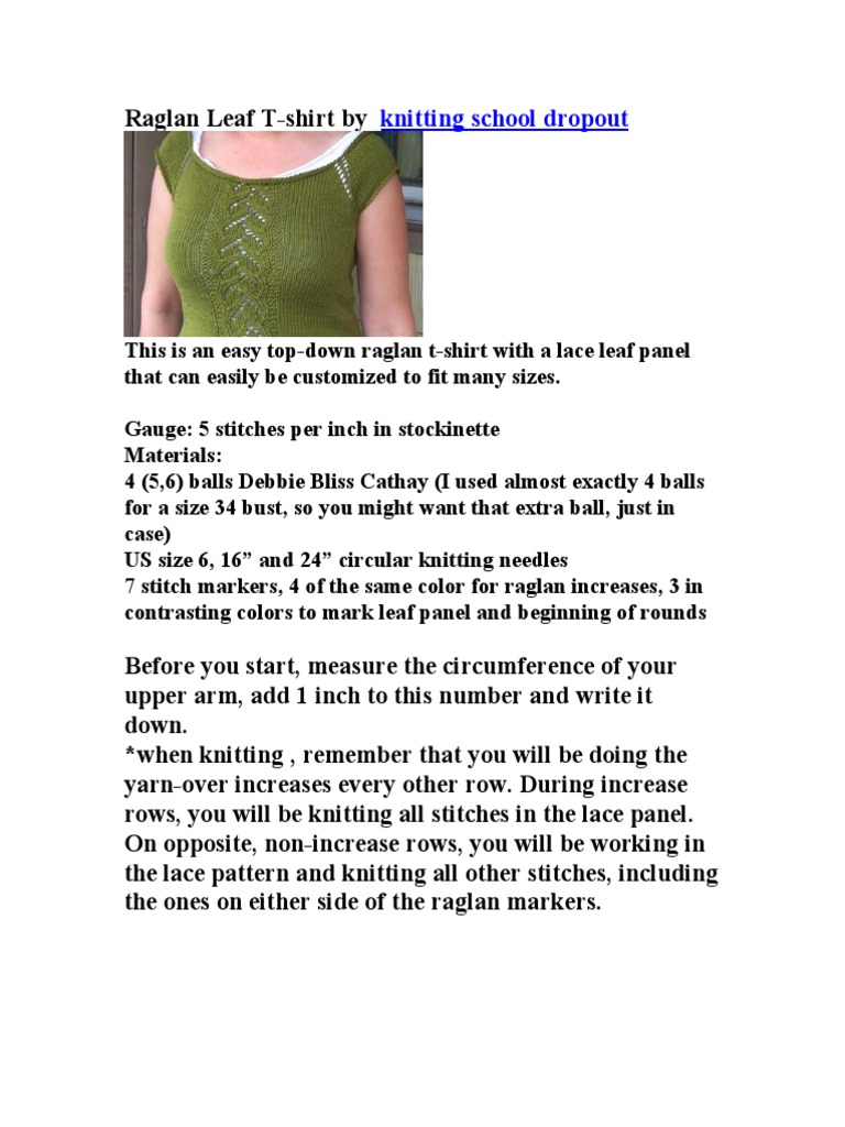 Raglan Leaf T-shirt by knitting school dropout