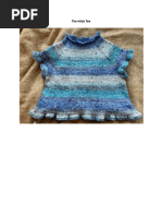 -Next row, knit all stitches, slip all markers until lace panel, work 2nd row of lace pattern, knit all stitches, slip markers until end of round. Continue increase rounds, then lace rounds, until the pieces between the raglan markers measure the same as the circumference of your upper arm, plus one inch. -On a non-increase row, and once the arm-area measures the required length, knit to first marker,remove marker, cast off all stitches between 1st and 2nd marker, remove 2nd marker, knit to next marker, work lace panel, knit to next raglan marker, remove marker, cast off all stitches to next marker, remove marker, knit to end of round. Next round, knit all stitches. Next round knit all stitches until lace panel, work in pattern, knit the rest of the stitches to the end of row. Repeat the last 2 rows until shirt measures desired length. Knit 3 rows, bind off loosely. Shirt will roll on bottom, if you are not a fan of the roll, add a few rows of ribbing, seed or garter stitch.