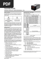 PSS 2C-1A1 B Page 4 FUNCTIONAL SPECIFICATIONS (Cont.) Discrete Input Signals One or two contact or transistor switch inputs, 5 V dc nominal open circuit voltage, 1 mA maximum current. For remote status changes such as A/M, R/L, W/P, EXT ACK, and tracking functions. Output Signals TWO NONISOLATED ANALOG OUTPUTS Control output (can be conditioned) and auxiliary output. Control: 4 to 20 mA into 500 maximum.10 to 50 mA input/output into 660 maximum is optionally available for shelf-mounted controllers. Isolated output option is also available. Auxiliary Output: 1 to 5 V dc into 2 k minimum. Can be used for measurement, set point, control, or conditional input signals. TWO DISCRETE OUTPUTS Two nonisolated open collector transistor (NPN) switch outputs. For status indication of A/M, R/L, W/P, and alarms. Contact ratings are 50 V dc maximum, 250 mA maximum. Leakage current is 100 A maximum. Transmitter Power Supply Standard controller provides 25 V dc field power for two 4 to 20 mA transmitters. Each transmitter connection has a 250 limiting resistor. Controller with optional 10 to 50 mA output provides 65 V dc field power for one transmitter. Output is currentlimited to 55 mA. Alarms Up to three absolute, and one deviation, high-low alarms are available. Two absolute alarms are configurable for the measurement signal, and one absolute alarm for the output signal. Deviation alarm senses the difference between the set point and measurement (error signal). Alarm status is indicated by a combination of alphanumeric display, the bar graphs, and the contact outputs. Alarm dead band is adjustable between 0 and 10% of span. Supply Voltage (As specified; fused.) ac SUPPLY VOLTAGE 24, 100, 120, 220, or 240 V; all +10, -15% 47 to 63 Hz, at 30 VA maximum dc SUPPLY VOLTAGE 24 V +20%, -10%; at 1 A maximum Input Filter Adjustment time, 0 to 10 min. Second order Butterworth filter. Front Panel The controller can be configured and operated entirely from the front panel with no external equipment required. By using the keypad and the display, complete process information can be read, and all controller settings can be changed (see Figure 1). The front panel consists of the following parts: Alphanumeric display consisting of two lines of 9 characters each, graphics display of three 50segment bar graphs, and status indicators. The displays are highly-visible fluorescent. The numerical quantities have a resolution of 0.1% of upper range value.The bar graphs have a resolution of 2% of span. Keypad of 8 keys. Keys must be pressed for a minimum of 0.2 seconds. Switches are normallyopen contacts, closing to a common lead. Environmental Operating Limits TEMPERATURE 5 and 50C (40 and 120F) HUMIDITY 5 and 95% Execution Rate 10 times per second. Memory All configuration and operating parameters are stored in a nonvolatile memory. Should a power failure occur, essential control settings and last operating conditions are saved indefinitely. No batteries are used. Control Adjustments PROPORTIONAL BAND 1 to 8000%. INTEGRAL 0.014 to 200 minutes/repeat. DERIVATIVE 0 to 100 minutes. Other Control Adjustments Non-Linear Extender to PID EXACT Control Ratio: 0 to 5 Calculations (each input can have a gain and/or bias, and can be combined together in a variety of mathematical equations). Characterizer (available on two signals at 20 segments each, including non-linear extender, assignable). Logic (AND, NAND, OR, XOR, NOR, and NOT on two contact inputs) Signal Conditioning (square, square root, characterizer, RTD and thermocouple (TC) linearizing).