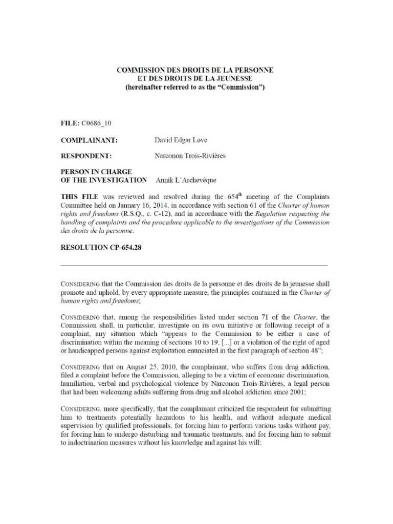 David Love Report, Quebec Human Rights Commission