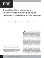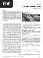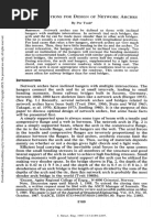 The students two parallel spans for the Svinesund Bridge are 135 m long. They could have been completely finished on a quay 20 km from the site. Two big floating cranes that could lift at least 800 t each could transport the main spans to the site. The authors wife prefers the present bridge. Furthermore it seems right to commemorate the peaceful dissolution of the union between two countries by building a beautiful bridge between them. In real life the students bridge would have looked better than in Fig.59. The hangers would hardly have been seen. The combined height of the four arches would have been about half of the height of the arch in the bridge that was built. The tie in the bridge that was built is about 7 times as deep as the tie in the students spans. The Svinesund Bridge is mentioned to illustrate another point. Like in the Svinesund Bridge, big roads often have two lanes plus a stopping lane in each direction. The two directions can be built meters apart. If network arches were used, two parallel spans would be lighter than one and easier to erect. If universal columns were used, the very slender arches would look good from a distance. Sometimes the same temporary lower chord could be used for both spans. In many places heavier traffic can be expected in the future. Then it might be economical to build one span sufficient for carrying the present traffic. Two parallel spans should be planned, and the second span should be added when the first span becomes congested. It seems to the author that the network arch with a concrete tie might be the optimal solution for some bridge spans between 40 m and up to and over 300 m. Maybe Network arches compete best for spans between 80 and 150 m, but the site is more important than the span. SUMMING UP Network arches are equally well suited for road and rail bridges. They use very little steel. An optimal network arch is likely to remain the worlds most slender tied arch bridge. The slim chords are pleasing to the eye and do not hide the landscape or cityscape behind them. If the bridge is not too wide, the tie should be a concrete slab. Concrete ties with small edge beams can be used for up to and over 15 m between the arches. Efficient methods of erection are available. Since the network arch needs little materials, a high percentage of the cost will be employment. The poverty in some parts of the world is one more reason for using the network arch at suitable sites. Depending on the site, the network arch can save up to 40% of the cost and 70% of the steel. If the network arch had been a well known type of bridge, it would sometimes have been hard to argue convincingly for arch bridges with vertical hangers and many other bridge types. Conservatism is the main obstacle to the building of network arches.
