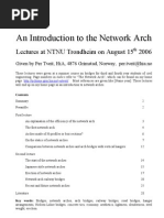 This text deviates slightly from a lecture at http://elearning-iabse.org/l20. The pictures might be slightly different from the slides in the lecture. The text contains references to a list of literature in The Network Arch. It can be found in my homepage http://home.uia.no/pert. Page numbers like p. 3 refer to [Tveit 2007]. References like [Herzog 1975] or [Herzog p. 280] refer to the list of literature in the same publication. Help for those who are looking for special items: Major themes: General explanations: pp. 1-3, Comparison to bridges with vertical hangers: pp. 9-10, 13 15, 31 33, Cost 15 16, Erection pp. 18 22, 25, 31 33, Railway bridges pp. 22 25, Nielsen Bridges pp. 17 18, Concrete in arches pp. 15 16, German and Japanese network arches. pp. 16 17, Recent network arches pp. 26 30, Svinesund Bridge pp. 31 33, Brandanger Bridge p. 33. Relaxation of hangers pp. 11 12, Why have network arches not been built p. 26. Minor themes: Buckling p. 11, Vibrations p. 20, Earthquake 30, Loss of hangers p. 5, Axial forces in chords of network arches p. 7, Steinkjer Bridge pp. 4 8, Bolstadstraumen Bridge p. 1, Blennerhassett Bridge p. 30, Fehmarn Sound Bridge p. 16, Shinhamedera Bridge p. 17, Bechyne Bridge pp. 26 27, Schulenburg Bridge p. 25, p. Providence Bridge p. 28, Flora Bridge p. 29.