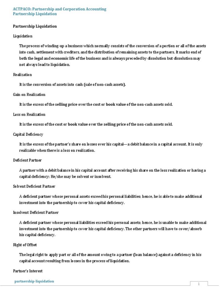 ACTPACO: Partnership and Corporation Accounting Partnership Liquidation Partnership Liquidation Liquidation